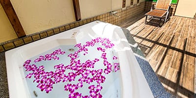 ラグジュアリーなインテリアに露天風呂、スチームサウナが揃った 女性にうれしい癒しのお部屋をご用意しております。 あなた次第で自由に遊べる充実の空間で、心も体もリラックスしてください。