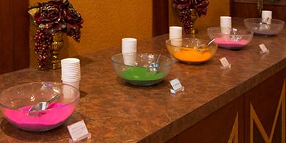 エントランスにある入浴バーでは、お好きな入浴剤が選べます。バスタブを貴方好みの色に染めましょう。